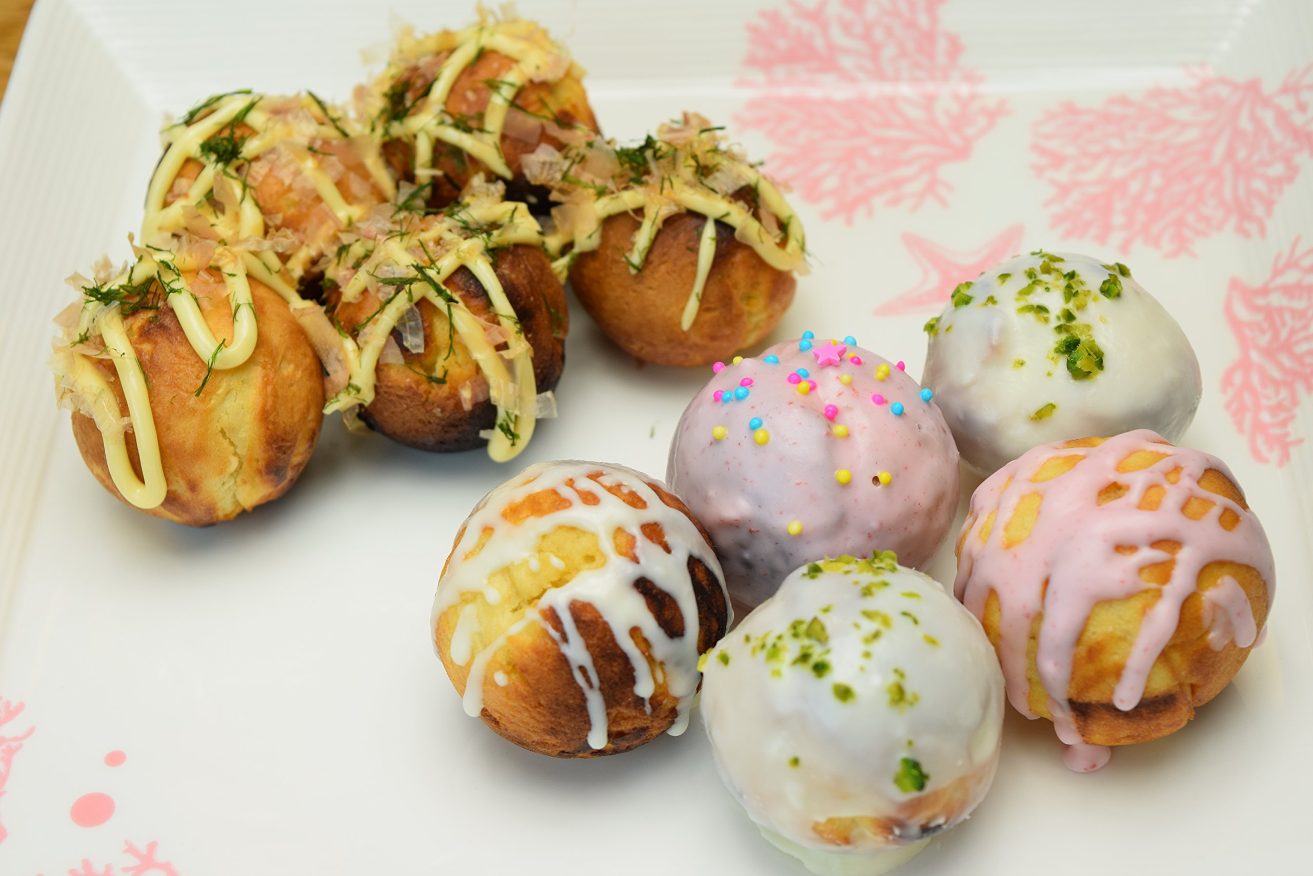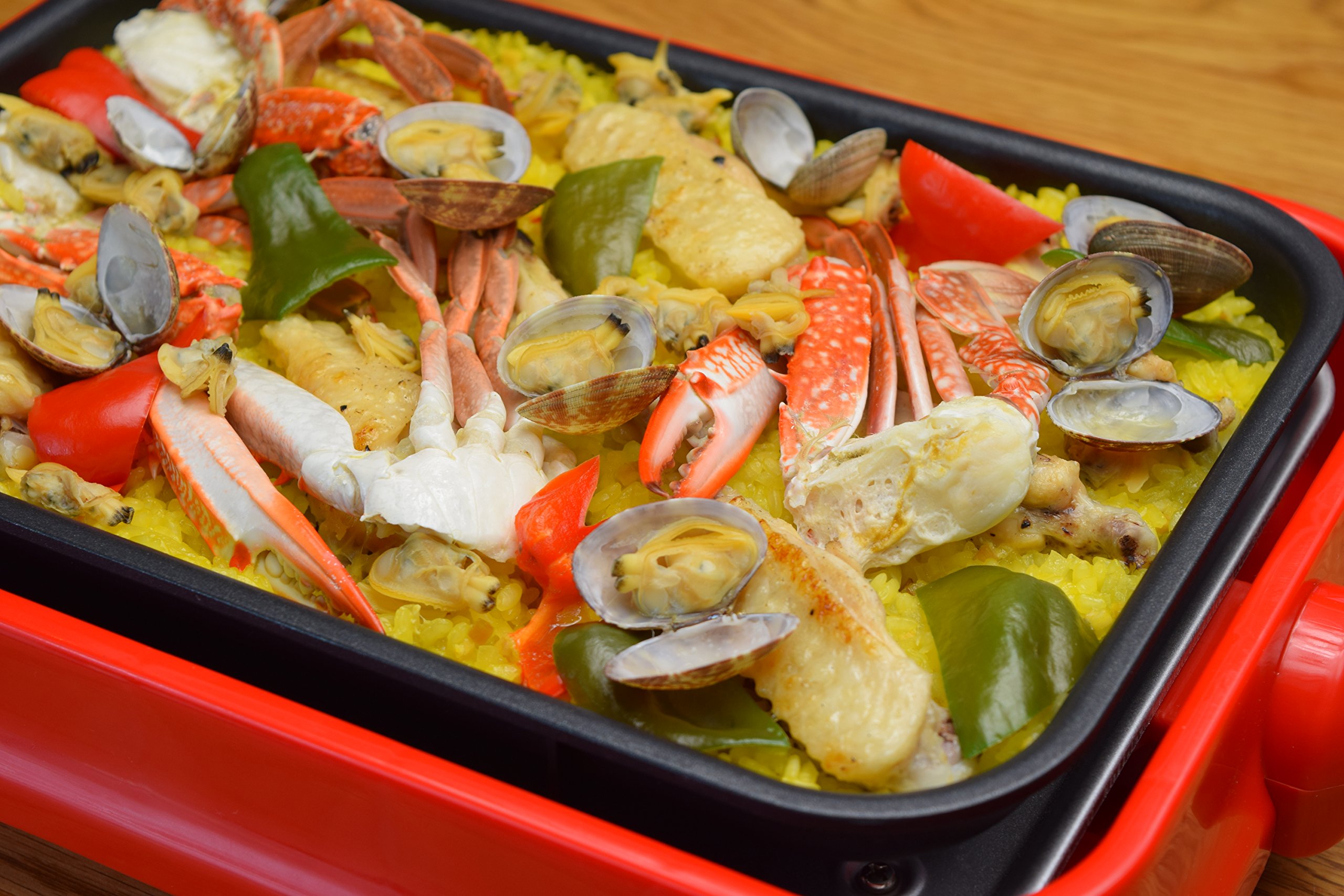 Electric cooker making paella · Takoyaki · grilled meat etc