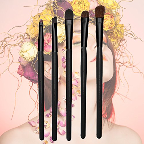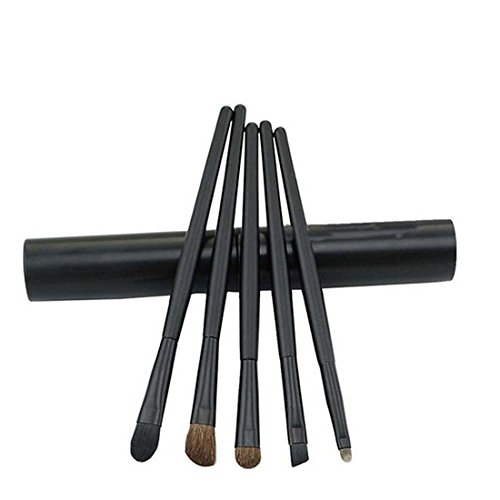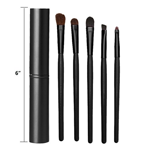 Bulons 5 Pcs Eye Makeup Brushes Set Eyeshadow Eyeliner Lip Brush Tool Kit With Round Tube Holder Case Cup (Eye brush set-Black)