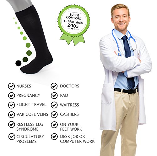 Mens Compression Socks by Sugar Free SoxProduct Features ? Sugar Free Sox Compression Socks include a microfiber fabric that is soft to the touch, has great durability, and ultimate stay up power. ? These socks enhance circulation and keep your legs healthier.? ? Compression socks are ideal for people with varicose veins, edema, swollen legs/ankles/feet, plantar fasciitis, or circulatory problems.? ? The refined and extended toe construction leaves room for toes to move around and avoid tightness and discomfort.? ? The 15-20 MMHG of graduated moderate compression keeps legs energized and increases circulation. Enjoy the super comfort of Sugar Free Sox and keep your legs feeling and looking healthy! Fabric Content: 80% Nylon 20% Spandex Fits mens shoe sizes 13-16, OTC Length. 0 |