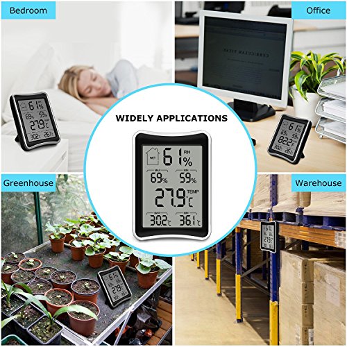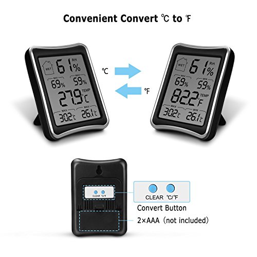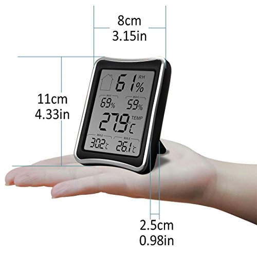 - The large LCD display shows all the information about thermometer and humidity. Clearly display daily high and low temperature and humidity by the monitor. So you can adjust room humidity levels to protect your possessions and improve room comfort.