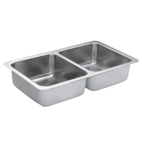 Moen G18211 1800 Series 18 Gauge Double Bowl Undermount Sink, Stainless Steel
