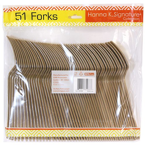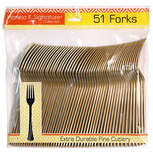 Hanna K. Signature Collection 51 Count Heavyweight Plastic Fork, Gold