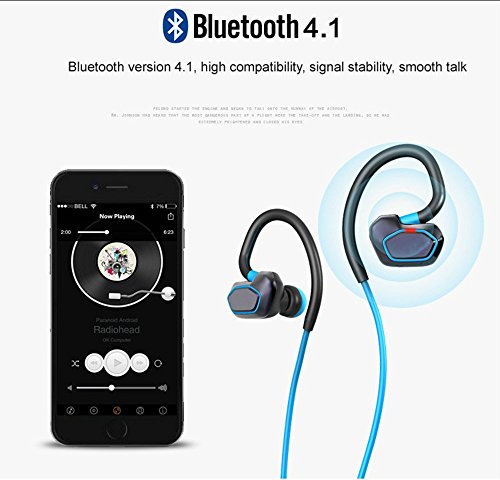 -. Feature : Mit Bluetooth 4.1, sorgen die aktiven Kopfhörer High-Fidelity-Stereo-Musik und klare Sprache über Noise Cancelling / Starke Wireless Signal: Sie genießen können übersP.R.Ingen-freie Musik in einem 10-Meter-Arbeitsabstand , auch wenn Sie Ihre Musik-Geräte verwenden, links / rechts, oben / unten Taille. / Exercise-proof & Sweatproof Design: Stabil und komfortabel bei der Ausübung, Laufen, Klettern, fahren, Skaten, Camping, Angeln und andere Outdoor-Sportarten. Unterschiedliche Größe earhooks enthalten. / kompatibel Universell mit den meisten Bluetooth-fähigen phones.And eingebaute in extra lange Akku ermöglicht bis zu 5 Stunden Gesprächs / Spielzeit und 180 Stunden Stand-by-up. / Multi-Funktion: Sie können Telefon antworten mit Mikrofon telefonieren, Lautstärkeregler , Wiedergabe- Steuerung.