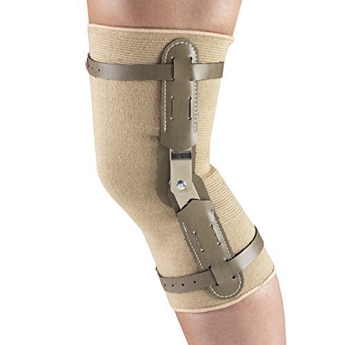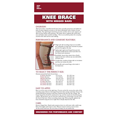 -. Feature : Lightweight rigid metal hinged bars provide excellent medial-lateral control and allow for free flexion and extension. / Thigh and calf encircling straps are reversible and adjustable to help brace maintain its proper position throughout the day. / Breathable heavy duty circular knit, seamless design aids in circulation and does not irritate the skin / Measure around the bend of the knee. / Available Sizes: X-Small (9.5-11.5 Inches), Small (11.5-13 Inches), Medium (13-14.75 Inches), Large (14.75-16.5 Inches), X-Large (16.5-18.5 Inches), 2X-Large (18.5-21 Inches), and 3X-Large (21-23.5 Inches).