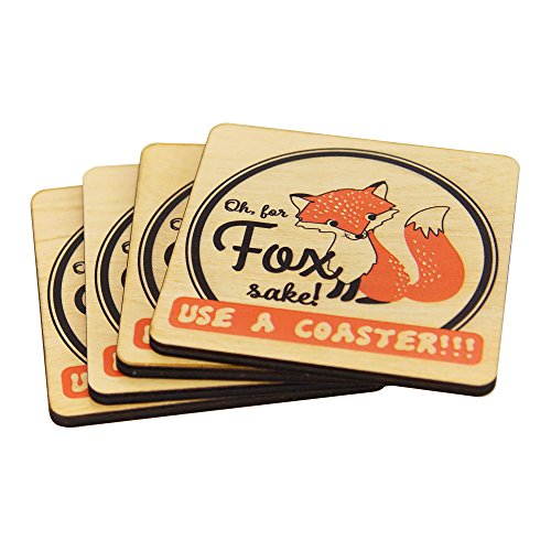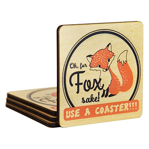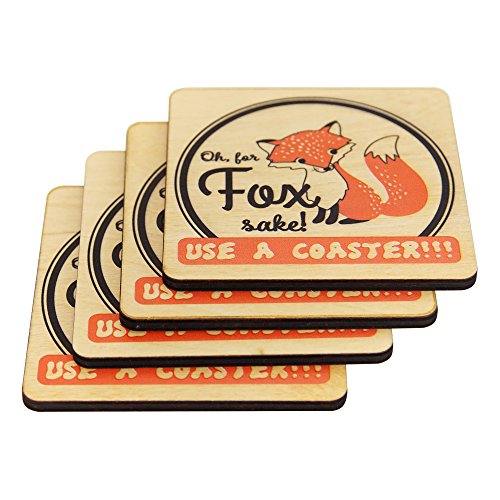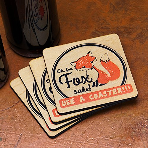 Wooden Shoe Designs Cute Fox Coasters, Tan (Set of 4)