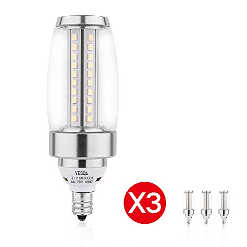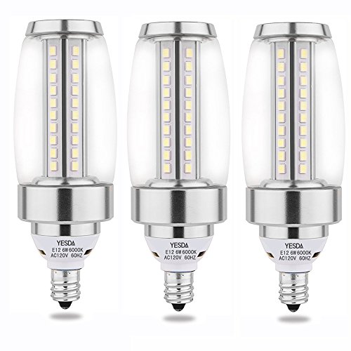 E12 Candelabra LED Light Bulbs -6W Super Bright Daylight White 6000K 60W Equivalent LED Chandelier Bulbs, Candelabra Base E12 Non-Dimmable LED Lamp, pack of 3 Silver Cover