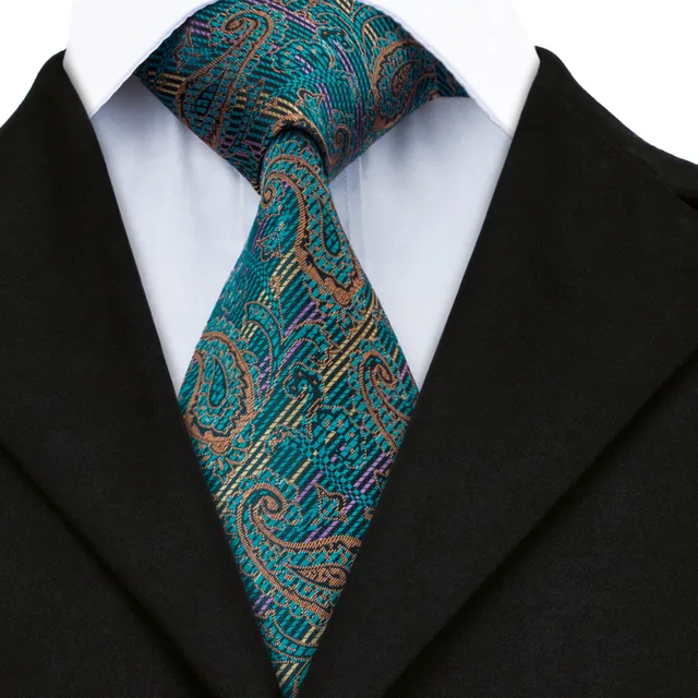 | [해외]DN-519 넥타이 블루 시안 보라색 노란색 스트라이프 브라운 페이즐리 2017 클래식 남성 100% 실크 넥타이 정장 웨딩 파티 신랑 |