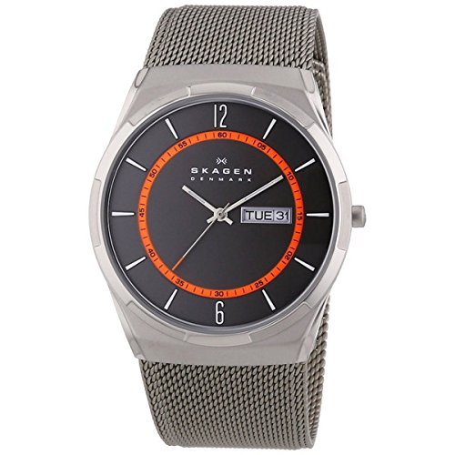 -. Feature : スカーゲンメンズ入荷です★ グレーステンレスメッシュバンドにチタニアムケース仕様の知的でエレガントなメンズ時計です。カジュアルにもスーツにもいろんな場面で活躍してくれそうなオシャレモデル★ 海外でも圧倒的な人気です!プレゼントにもご自身へのご褒美にもオススメ★ / 色:文字盤=グレー・オレンジ ケース=チタニウムグレー バンド=グレー サイズ:ケース幅 約40 mm 厚さ約7.6 mm バンド幅約 28mm 素材:チタニウム、ステンレススチール、ミネラルクリスタル 防水性能:5気圧防水 機能/特徴:並行輸入正規品、メッシュバンド、日付表示 付属品:純正ボックス ムーブメント:クォーツ
