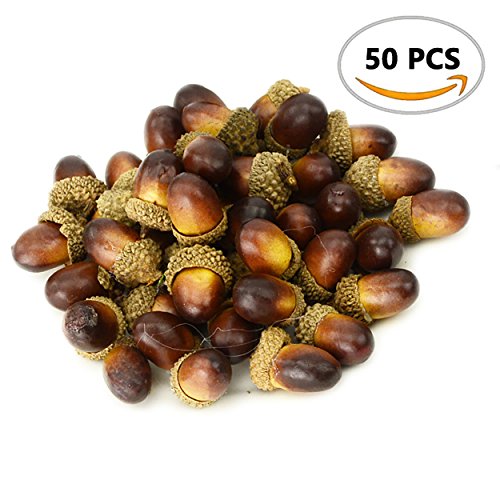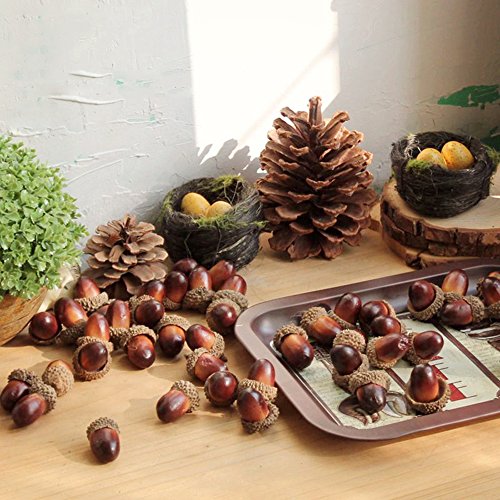 R.FLOWER 50PCS Artificial Lifelike Simulation Small Acorn Set Decoration Fake Fruit Home House Kitchen Decor (Dark color)