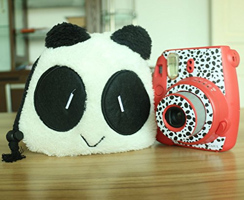 Cute Panda Comprehensive Protection Camera Case Bag With Soft Plush Material for Fujiflim Instax Mini 7s 8 90 25 50s, Pencil Phone Card Holder Cosmetic Makeup Pouch Organizer