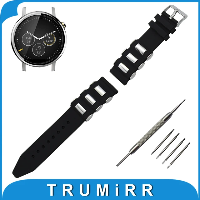 22 미리메터 실리콘 고무 시계 밴드 + 도구 모토로라 모토 360 2 46 미리메터