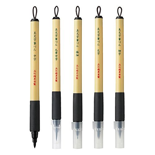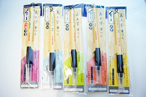 Kuretake Bimoji Brush Pen, Extra Fine, Fine, Midium, Broad, Midium/Bristles, Value Set of 5
