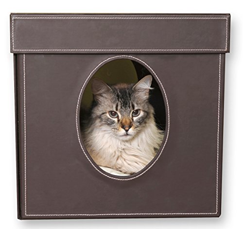 -. Binding : Misc. -. Brand : Mr. Herzher's -. Color : Espresso -. EAN : 0852185001378 -. Feature : Stylish espresso faux leather with exposed stitching coordinates with most any décor / Entry location in the front with side ports for hour of cat naps and play time / Cushion is reversible and has high-loft polyfil for ultimate comfort / Stack several units in a multitude of different ways as a cat play tower / 20 by 15 by 15-inch -. Label : Mr. Herzher's -. Manufacturer : Mr. Herzher's -. Model : 10102 -. MPN : 10102 -. PackageQuantity : 1 -. PartNumber : 10102 -. ProductGroup : Pet Products -. ProductTypeName : PET_SUPPLIES -. Publisher : Mr. Herzher's -. Studio : Mr. Herzher's -. Title : Mr. Herzher's Decorative Cat Hut Espresso Finish -. UPC : 852185001378 -. Warranty : 1 Year Limited Parts and Material.