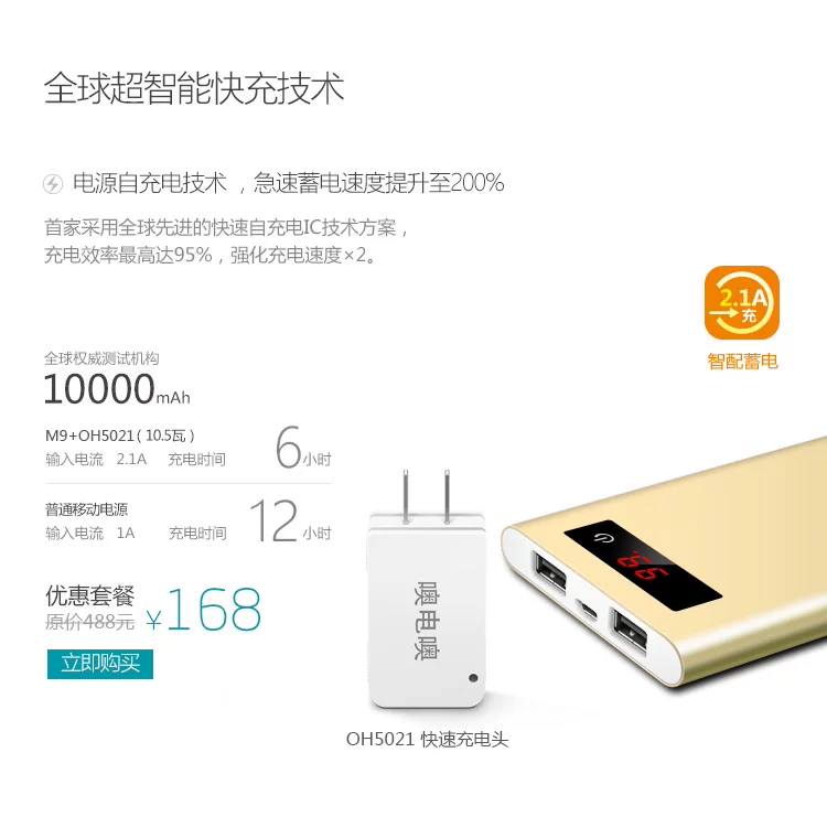 自身充满时间    快速2.1A 6小时充满