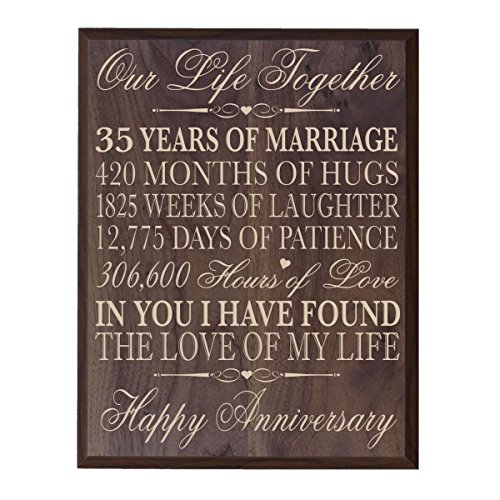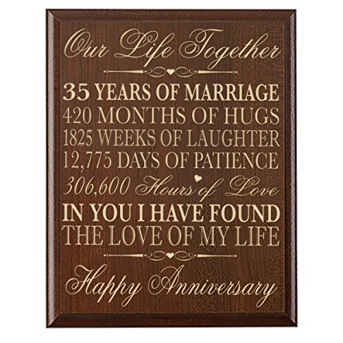 Special dates to remember 35th Wedding Anniversary Wall Plaque Gifts for Couple, Custom Made 35th Anniversary Gifts for Her,35th Wedding Anniversary Gifts for Him 12" W X 15" H Wall Plaque Honor the happy couple with a personalized 35th wedding anniversary cherry wall plaque. A treasured and lasting personal keepsake for wedding or anniversary. 35th Anniversary plaque can be displayed on tabletop or hung on wall.Feature