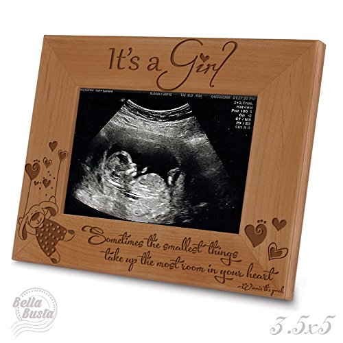 -. Title : Bella Busta - Sometimes the smallest things take up the most room in your heart ( Winnie the Pooh) Sonogram - Baby Girl - Baby Boy - Engraved Natural Wood Picture Frame 3 1/2" x 5" Horizontal