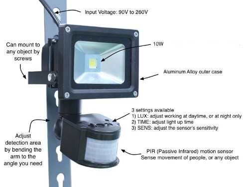 -. Title : 10W Outdoor PIR LED Security Light Flood Light - 39ft Detection Range 180 Degree PIR Motion Sensor