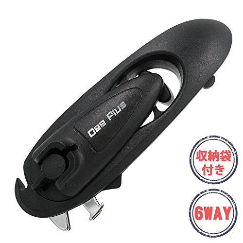 -. Title : 缶切り 缶オープナー Dee Plus(ディプラス)6WAY 万能 缶オープナー 栓抜き ペットボトルオープナー キャップオープナー 調理器具/プロ御用達/厨房内備品/店舗用品/防災用品 (ブラック、収納袋付き)