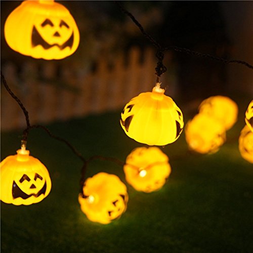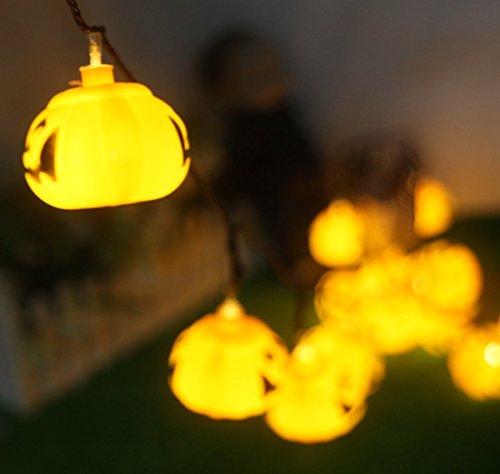 JOJOO Solar Powered 10LED 3D Pumpkin String Lights 3.5M/ 11.5ft Warm White Halloween String Lights for Home Window Outdoor Garden Fence Patio Decor, LT020