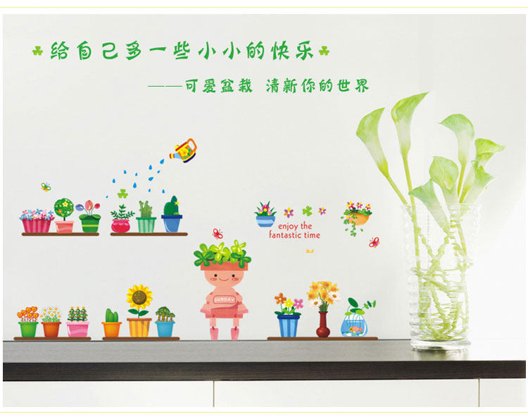 可移除墙贴纸客厅卧室儿童房间装饰贴幼儿园背景墙壁贴画可爱花盆