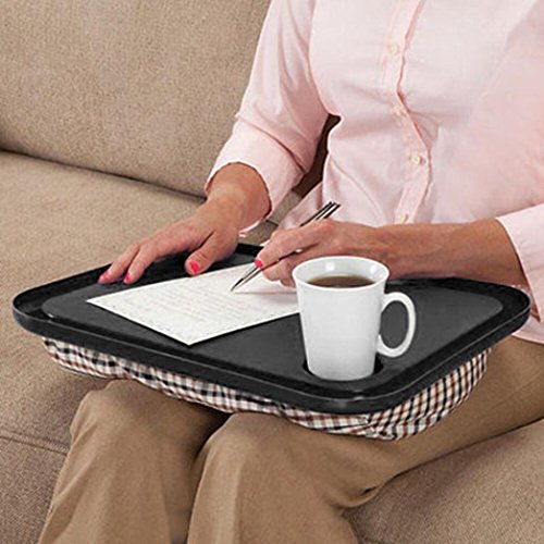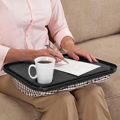 -. Feature : Itable easily shapes to your lap with cushy, beanbag base. This convenient lap table gives a smooth, level surface or anyplace you sit! Highlighting convenient container holder and furrowed edges to avert spills, this lap table is ideal for feasting, perusing, composing, creating or getting a charge out of riddles and games. Plastic plate, polyester-secured base. 17" long x 13" wide x 2 1/2" high. / gives you a level surface for perusing, composing, eating, or card playing / Package Content: 1 X Lap Desk For Laptop Chair Student Studying Homework Writing Portable Dinner Tray