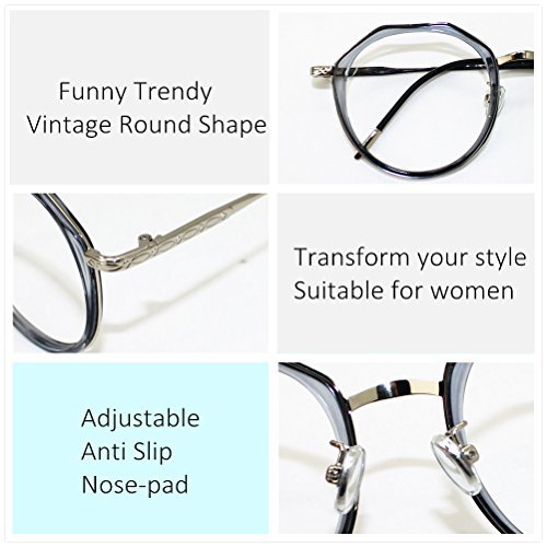 UNIQUE FRAME DESIGN - This cool and unusual round frame features a unique twist with light grey acetate wrapped rims. The perfect specs to bring out the fun and funky. adjustable nose pads provide all-day comfort.