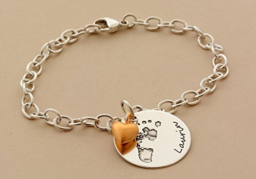-. Title : ACTUAL Foot- or Handprint of your Child .. sterling silver bracelet .. Perfect MOM, Grandmom, Sister, BFF gift .. Baby's Footprint Keepsake