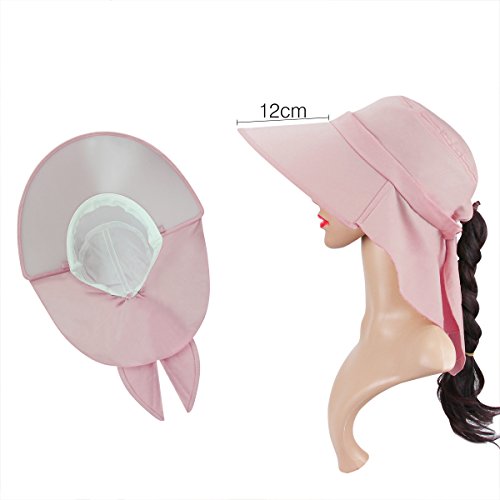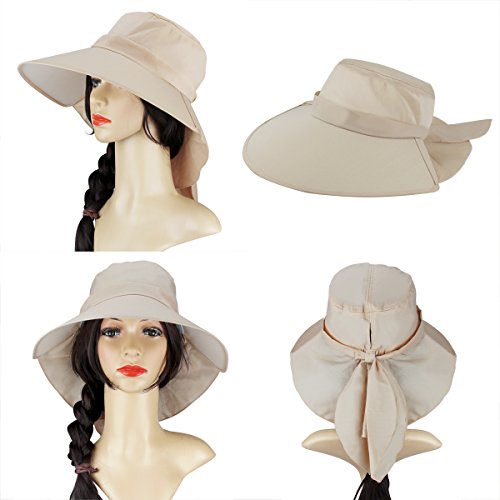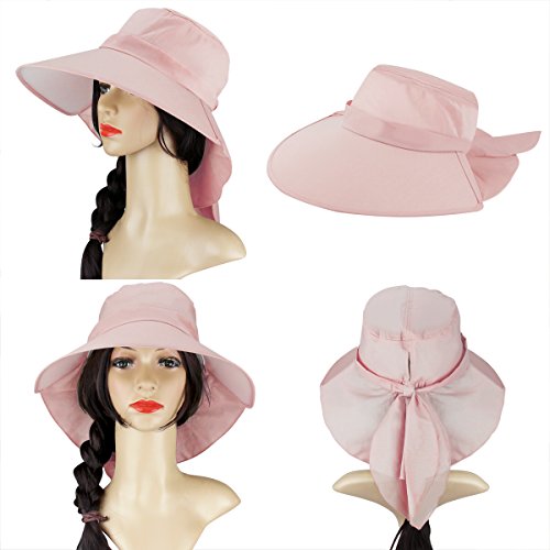 Binding : Apparel Product Description Womens Summer Flap Cover Cap Cotton Anti-UV UPF 50 Sun Shade Hat With Bow Wide Brim Adjustable Hat