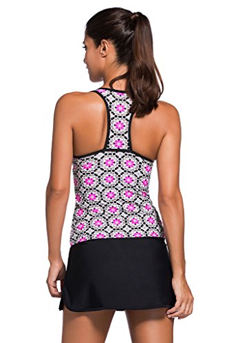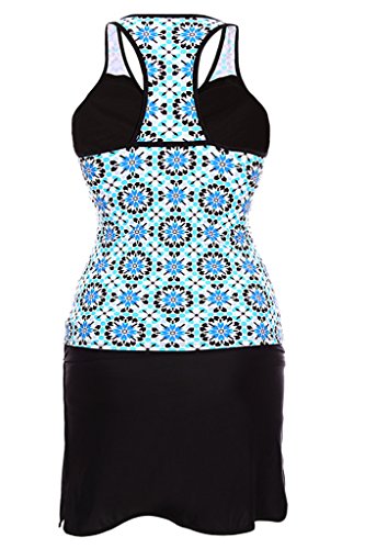 The racerback tankini top is designed in an abstract floral print in a vibrant color. The modest swim top features elastic under the bust to slim and support. No underwire, removable sponge padded cups. A matching swim bottom offers a modest look and comfort without sacrificing design. The elastic band fits comfortably on your hips, and the built-in short provides full coverage. Show just a little skin with slits on the side. Take this 2pcs swimsuit from your toughest work out to the water with quality fabric that wicks away moisture, and features anti-chaffing and quick-dry technology. 0