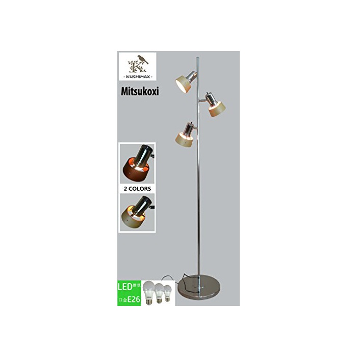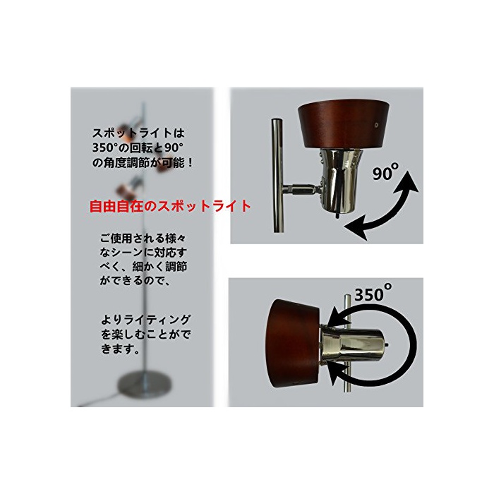 KUSHIMAX 『Mitsukoxi』 대형 전기스탠드 라이트 풋 스위치식 개별 점등이 가능합니다 우드 쉐이드 모던 상하 좌우 방향 전환 스포트라이트 LED전구 부착 (크롬×내츄럴