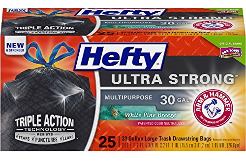 Hefty Ultra Strong Large Trash Bags (Multipurpose, White Pine, Drawstring, 30 Gallon, 25 Count)