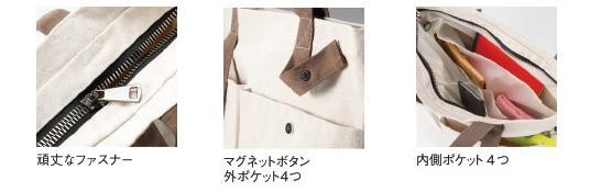 カジュアルに使える大きめの丈夫な帆布バッグ。