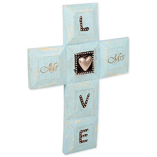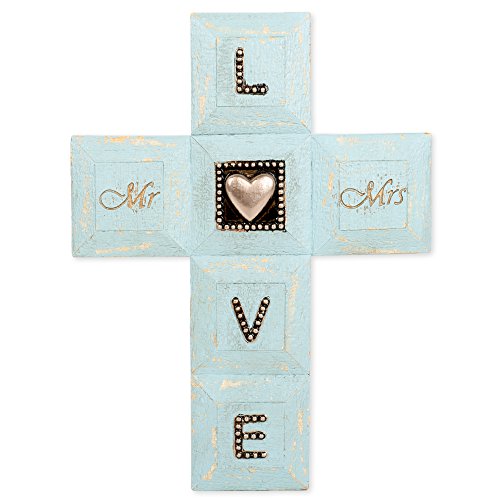 Mr & Mrs Love Distressed Turquoise Blue 8 inch Decorative Wall Cross Plaque