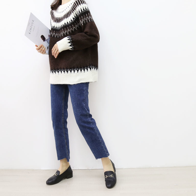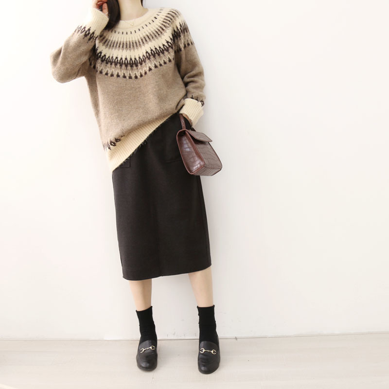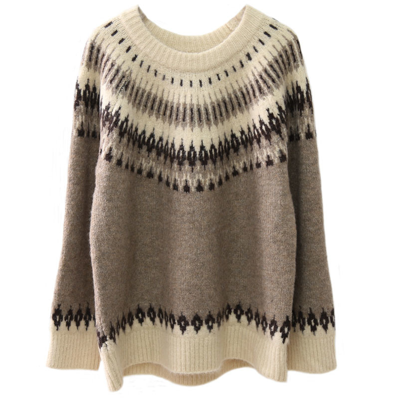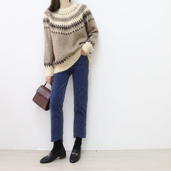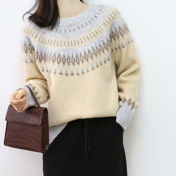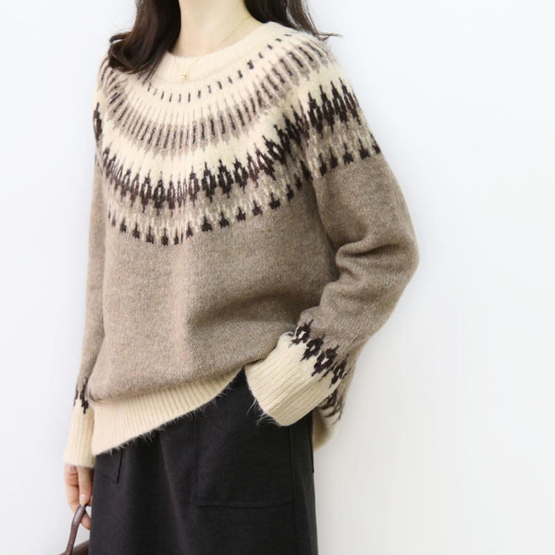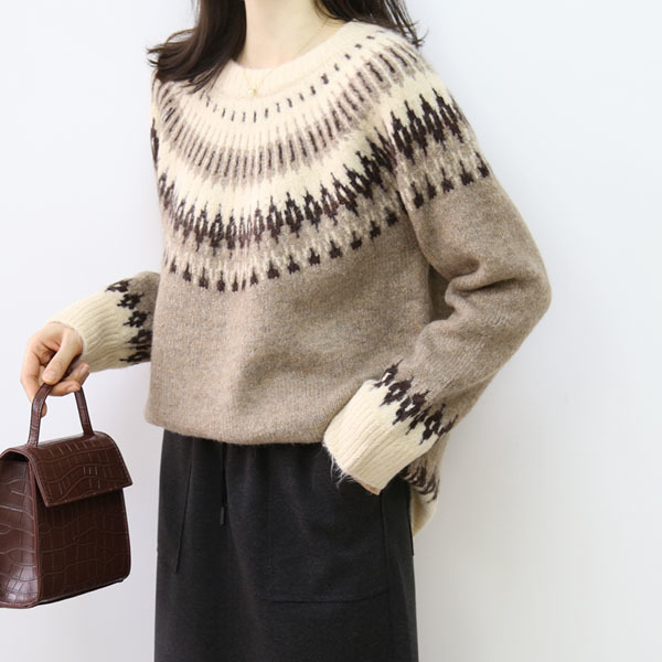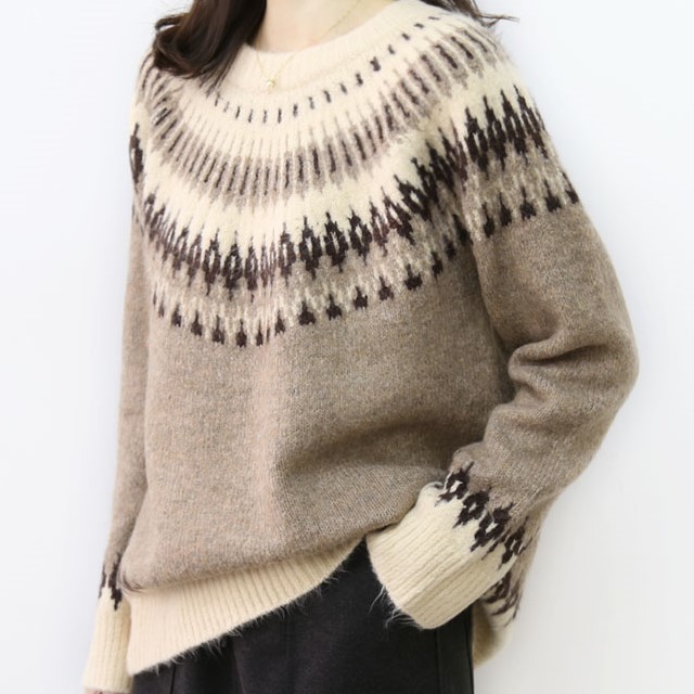 冬の季節の訪れを感じるノルディック柄のニットプルオーバー。