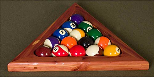 Product DescriptionRed cedar billiard triangle. Standard eight ball triangle. Clear finish. 17 in. L x 20 in. W x 2 in. H (2 lbs.)0