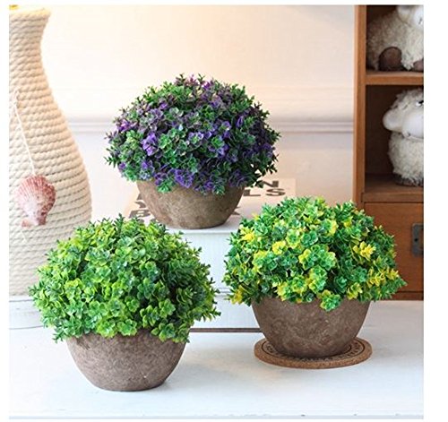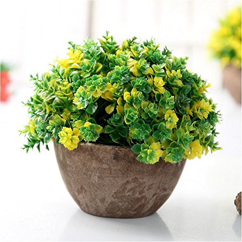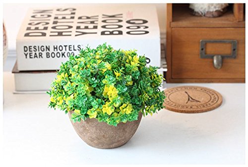 XICHEN Artificial potted plant, Lucky grass - Retro semi-circular 13.5cm (Yellow)