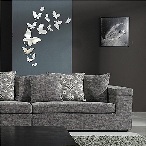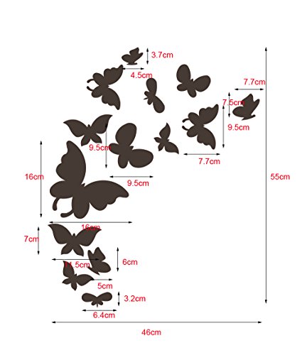 DIY Wall Mirror Stickers: 14pcs Butterfly decals could fully spark your artistic imagination and create a unique style for your preference. The biggest butterfly size: 16x16cm. The smallest size: 4.5x3.7cm.