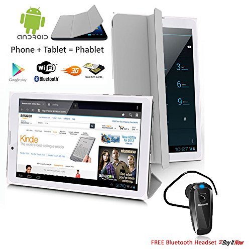 -. Feature : 7.0 inches Android 4.4 Kitkat 3G Phablet 2-in-1 Tablet PC + GSM Wireless SmartPhone (Call as mobile phone) with FREE Smart Cover Case Built-in, Google Play Store and HD Capacitive Multi-Touch Screen / GSM Mobile Cell Phone - Support 3G GSM QuadBand: GSM 850/900/1800/1900MHz WCDMA 850/2100MHz|Make and receive calls directly from the tablet itself with the built-in MIC and speaker / Powered by MTK MT8312 DualCore Processor 1.2GHz CPU, 8GB Internal Memory, Latest Android 4.4 Kitkat Operating System, Integrated 802.11 b/g/n, Bluetooth, Dual-Camera, Dual Sim and more. / WiFi 802.11 b/g/n Support - Connect to internet for A full Internet experience | Bluetooth enabled - connect to any bluetooth headset handsfree / Support Google Play Store and preinstalled - access to millions of free and paid-for applications available to download straight to your Smartwatch