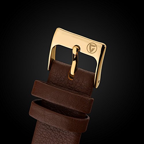 Armband aus echtem Leder: Die Gigandet Armbanduhr Minimalism G38 bietet höchsten Tragekomfort durch die Verwendung echter Kalbslederarmbänder. Das Oberleder hat eine fein geprägte Struktur und schmiegt sich angenehm um das Handgelenk. Die edle, hochglanzpolierte Dornschließe rundet das minimalistische Gesamtbild ab.