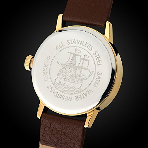 Massives Edelstahlgehäuse: Das Gehäuse der Uhr besteht aus massivem Edelstahl (316L), der besonders säure- und korrosionsbeständig ist. Die Detailverliebtheit zeigt sich auch bei dieser Uhr im geprägten Gehäuseboden, den das markentypische Gigandet Schiff kennzeichnet.