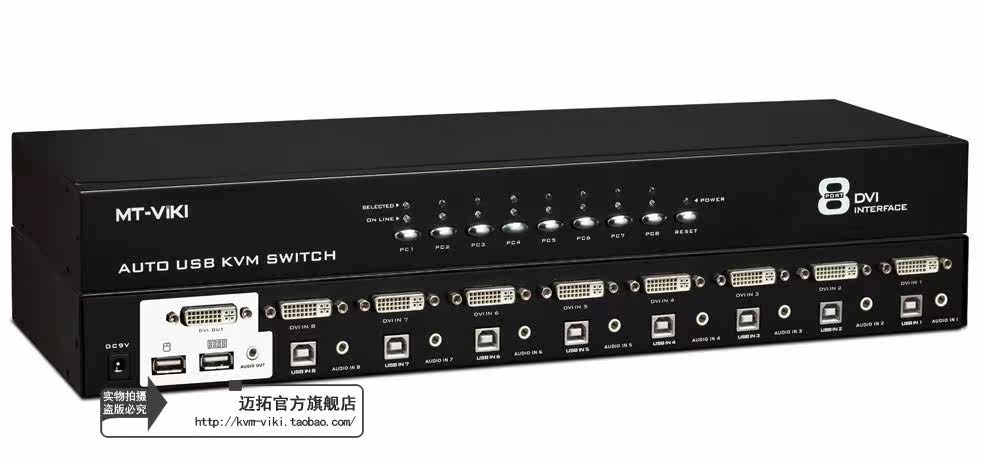 The 1 set of keyboard mouse monitor control 8 DVI interface of the computer;do not need to install software key switch, can also be hot key support hotplug automatic scanning can monitor any work computer applicable securitiesmarket education and other industries.