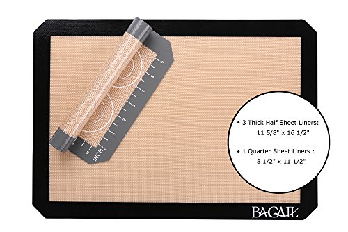 FUNCTIONAL SIZES:3 Thick Half Sheet Liners (16.5" x 11 5/8") fits US standard half size baking sheets . 1 Quarter Sheet Liners (8 1/2" x 11 1/2")WITH EXTRA HELPFUL CHARTS PRINTED - Mat thickness is 0.75 mm (approx. 1/32")