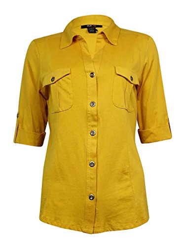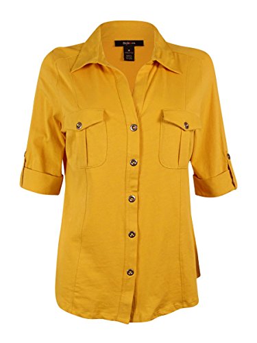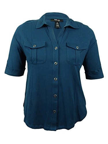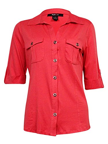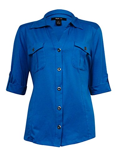 Style Co. Women's Cuffed V-Neck Knit Buttoned Top