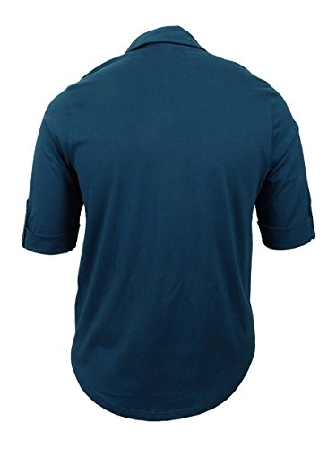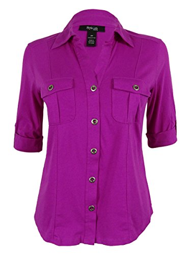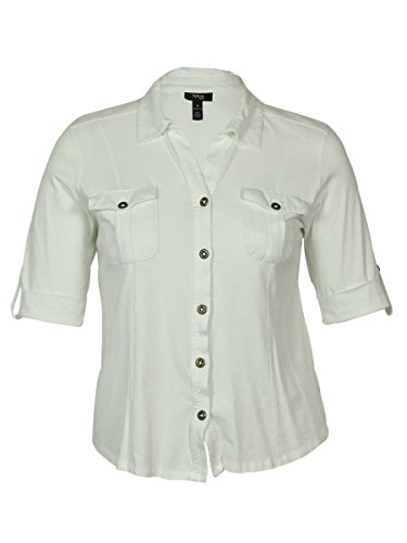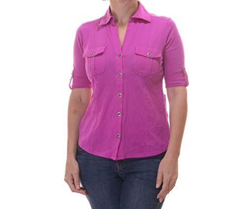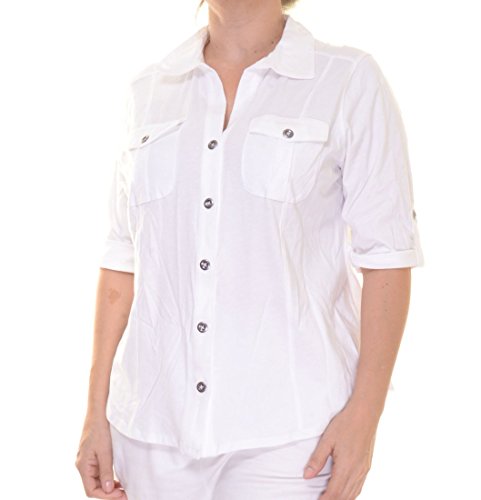 Product DescriptionTop features no lining, V-neck, cuffed half-sleeves, knit cotton fabric, front flap pockets, and front button closure.0