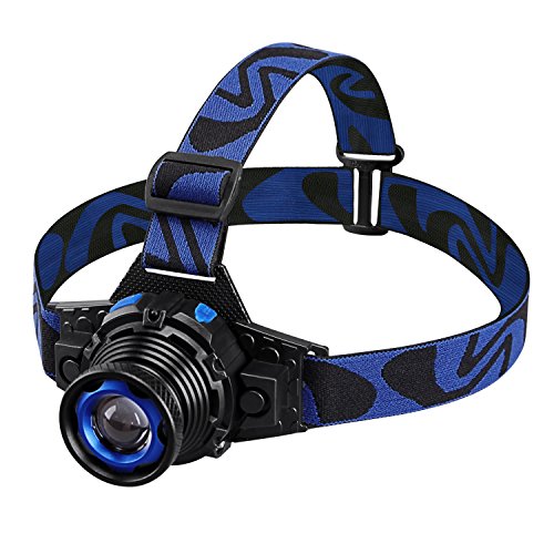 STCT Street Cat Upgraded Adjustable Rechargeable LED Headlamp Flashlight 3 Modes,Zoomable and Waterproof Headlamp for Free Work, Hiking, Camping, Climbing, Running and Adventure-Blue