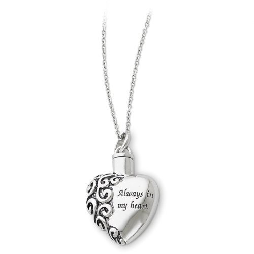 -. Title : Sterling Silver Cremation Jewelry Memorial Urn Ash Holder Pendant Necklace "Always in My Heart"