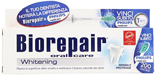 Biorepair® is the toothpaste that actually repairs tooth enamel! Although on the surface most teeth look healthy, daily wear and tear causes hundreds of tiny flaws to appear in tooth enamel. Over time, plaque and bacteria can form in these flaws and can lead to more serious damage such as tooth decay and sensitivity. Biorepair® works to repair tooth enamel, prevent decay and reduce sensitivity by filling in the tiny cracks and binding to the structure of the enamel.Due to its formula rich in microRepair®, Biorepair® Whitening restores the natural whiteness of teeth and protects them from plaque, tartar build-up, cavities and acid erosion. EFFECTS: