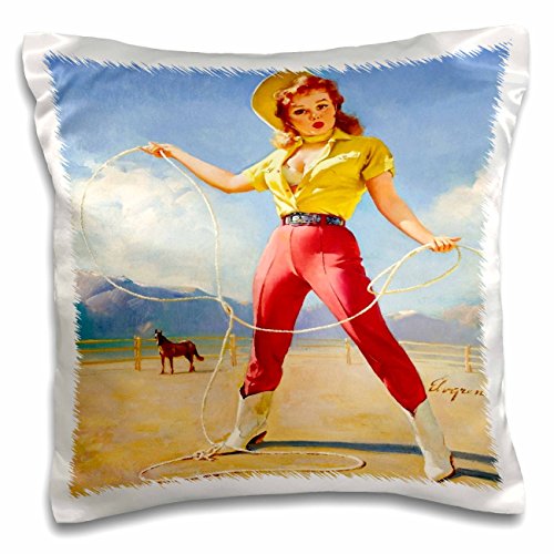 3D Rose Print of Elvgren Pinup Roping Cowgirl Pillow Case, 16" x 16"