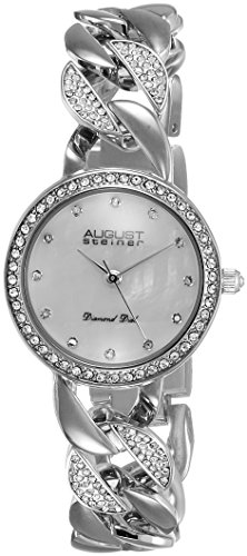 August Steiner Women's AS8190SS Silver Crystal Accented Quartz Watch with White Mother of Pearl Dial and Silver Bracelet
