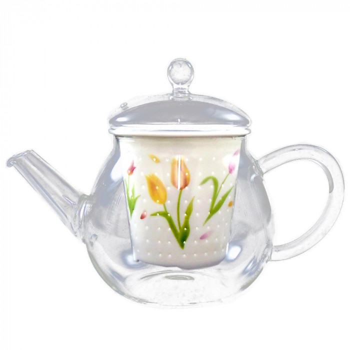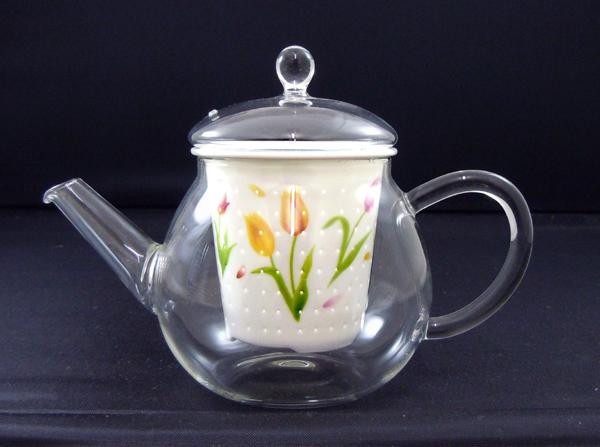 ガラスのティーポットに有田焼の茶こしがおしゃれ☆日本茶・紅茶・中国茶・ハーブティーなどいろんなお茶にご使用下さい♪ |